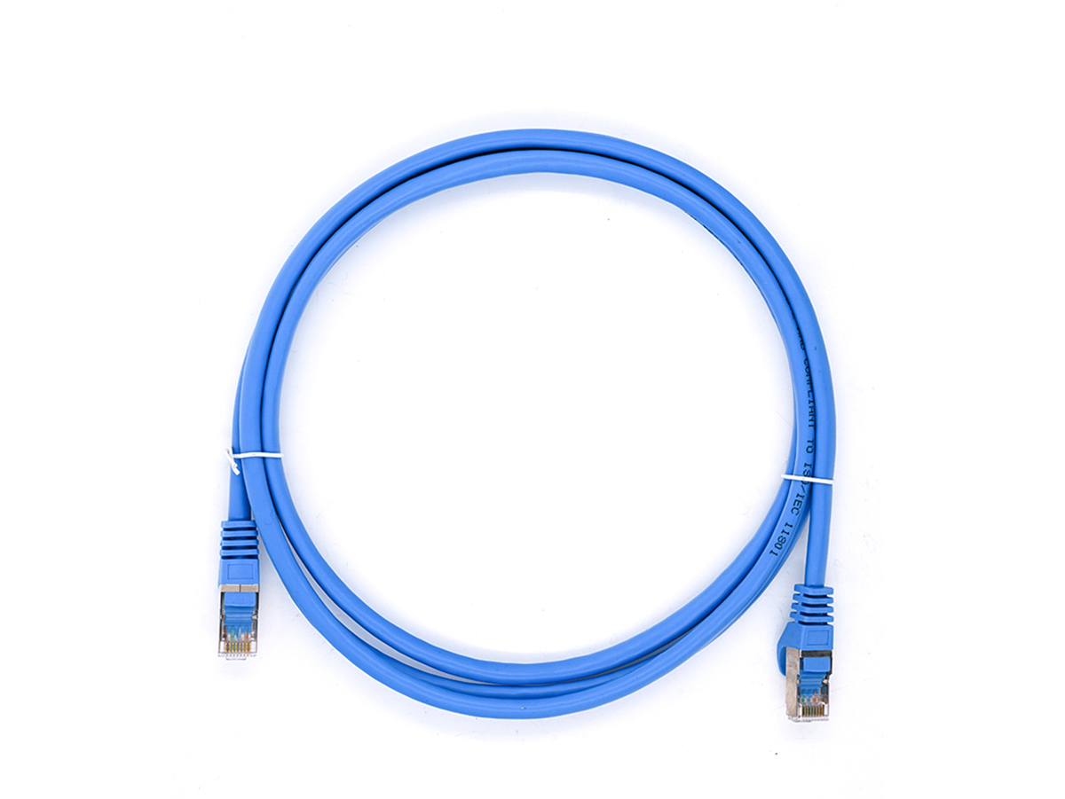 七类双屏蔽跳线产品结构:1、8根芯线7*0.16无氧铜导体2、4对双绞线芯对对屏蔽3、编织网双屏蔽抗干扰4、护套PVC或低烟无卤料